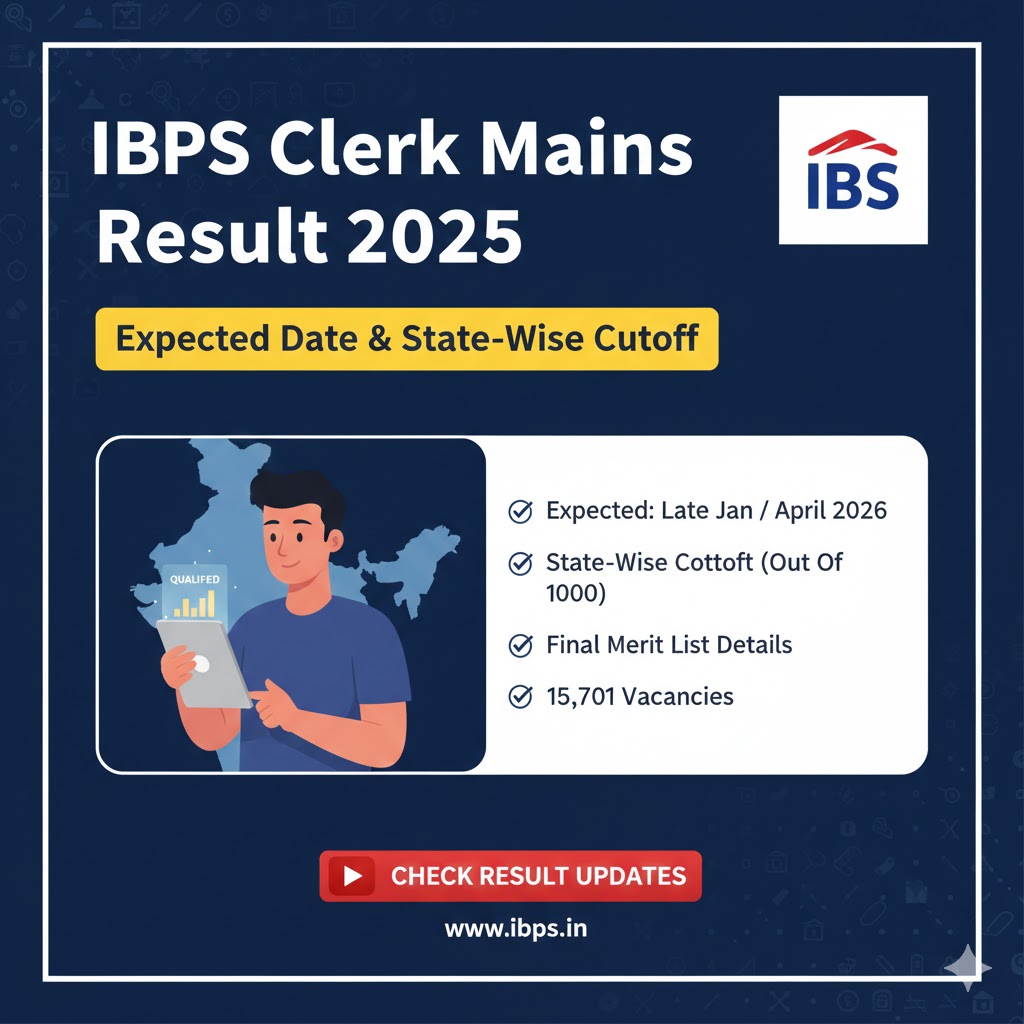 The Institute of Banking Personnel Selection (IBPS) conducted the CRP-Clerical XV Mains Examination on November 29 and December 2, 2025. Over 1.5 lakh candidates who cleared the Prelims are now eagerly waiting for the IBPS Clerk Mains Result 2025. This result is the final hurdle in securing one of the 15,701 clerical vacancies in participating public sector banks.