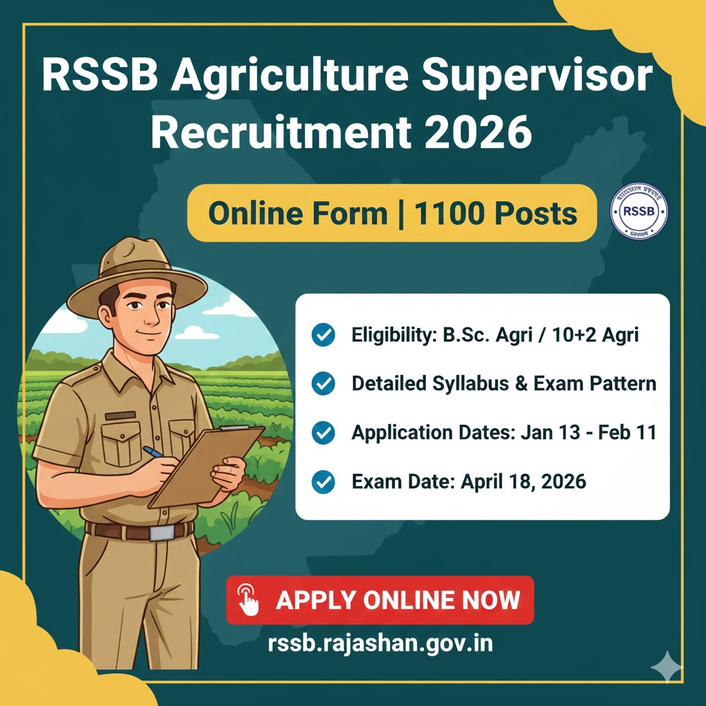 The Rajasthan Staff Selection Board (RSSB/RSMSSB) has officially released the detailed notification (Advt. No. 03/2026) for the recruitment of Agriculture Supervisors (Krishi Paryavekshak). This is a premier opportunity for agriculture graduates and 12th-pass students in Rajasthan to secure a stable government job in the Department of Agriculture.